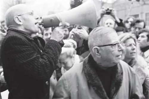 Viceversa, Michel Foucault si fa contagiare dalla posa dell’intellettuale “universalista” che ancora Sartre incarna e, tra la fine degli anni Settanta e gli anni Ottanta, assume sempre più le vesti di difensore e combattente per i diritti umani e i valori della democrazia. Una direzione che farà allontanare da lui Deleuze, ma che lo porterà a ritrovarsi ancora con Sartre in nuove iniziative e lotte come la protesta contro la visita di Breznev in Francia, in appoggio ai dissidenti sovietici, o il sostegno all’operazione del boat-people vietnamita di Bernard Kouchner. E, non a caso, negli stessi anni Foucault va maturando un cambiamento nel programma di lavoro. Comincia a dismettere la postura nietzschiano-genealogica radicale del filosofo del sospetto, che scorge dietro i proclami illuministici e liberali solo dispositivi di assoggettamento e a interessarsi a una nuova problematizzazione del soggetto fino al tema del “governo di sé”.