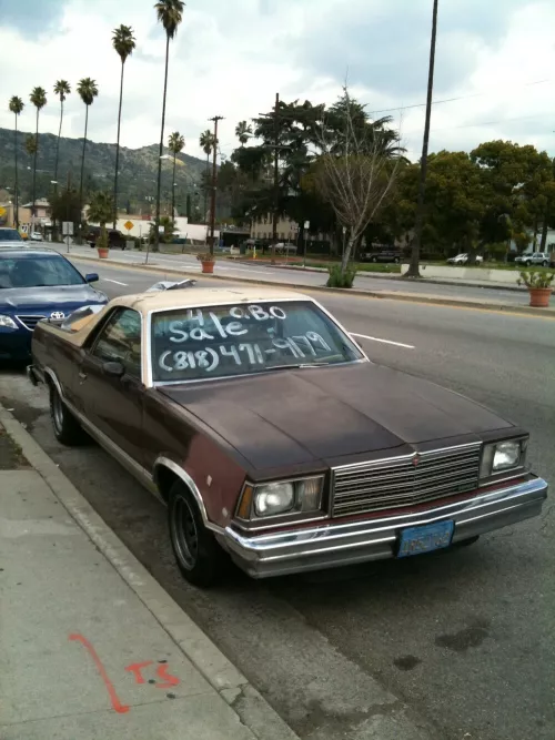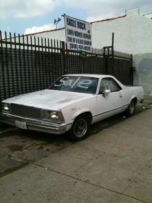 Prendo sempre York Boulevard per andare da Seafood City a Eagle Rock. Altra cosa che faccio quelle parti, è guardare per strada le macchine usate in vendita L’ultima volta ho fotografato le offerte di giornata. Chevy El Camino belle conciate, ma sempre fascinose, un’altra Chevy Caprice con la carrozzeria aerografata. Mi fermo guardo, sono tentato, mi tento, mi immagino, mi visualizzo, poi boh! Lascio perdere, devo andare a comprare le mie orate.