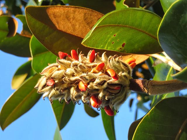 Chissà quanto consapevolmente Montale ha legato alle magnolie la figura di Clizia. Certo, l’albero e la donna si ornano dei medesimi gioielli: in autunno le pigne della grandiflora sfoggiano frutti laccati di rosso. Rossi come i coralli di Clizia («le tue pietre, i coralli»), penduli come quei suoi orecchini fermati ai lobi da «squallide» mani, e «travolte» dalla stessa bufera che sgrondava quel giorno dalle foglie della magnolia.