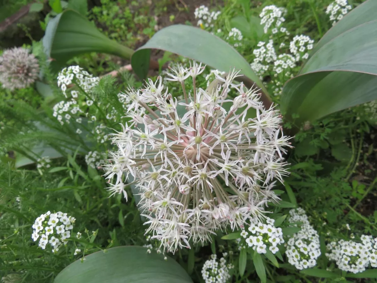 Penso non solo ai vistosi globi stellati che s’ergono alti un metro dai costosi bulbi delle varietà giganti: spettacolari, specie se mescolati a graminacee, iris e salvie per camuffare i nastri fogliari presto bruciati in punta. Non da meno è il più modesto e selvatico Allium ursinum che, in questi giorni, fa da tappeto all’umido sottobosco: belle le coppie delle foglie basali, ovali-lanceolate – simili a quelle dei mughetti – da cui si drizzano, al sommo degli scapi, gli ombrellini fioriti di bianco.