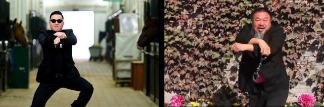 Il 25 ottobre 2012 Ai Weiwei pubblica un video, che in Cina verrà prontamente censurato dopo pochi giorni, in cui offre una personale versione del Gangnam Style, il tormentone estivo di portata mondiale del rapper sudcoreano Psy. Ai Weiwei  vestito in giacca nera e con una maglietta rosa shocking, balla con i suoi amici e collaboratori riprendendo le mosse di Psy e trasformando il gesto dei polsi caratteristico della canzone sudcoreana in uno sberleffo alle autorità di Pechino: in mano ha delle manette che sventola al ritmo della musica e che sembra voler sbattere in faccia a chi gli impedisce di espatriare.