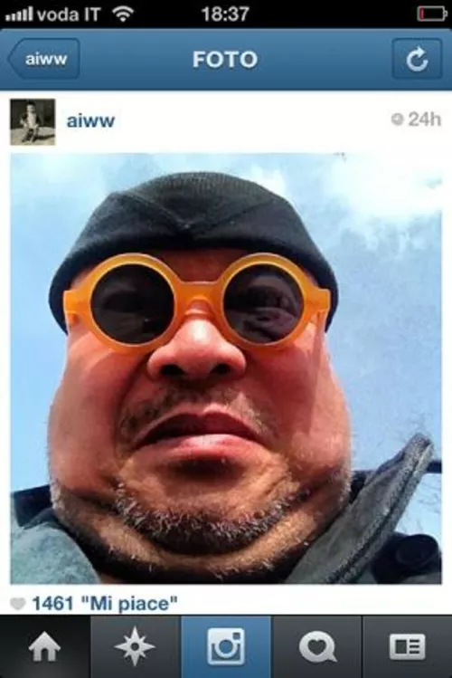 Ai Weiwei non si nasconde, ogni giorno pubblica qualche foto oppure lancia un paio di tweet, si mette sotto gli occhi di tutto il mondo. È proprio questa la sua massima provocazione alla politica repressiva, superare i confini imposti dall’alto, espatriare attraverso la rete. Ma l’aspetto più interessante non sta tanto nel suo essere quotidianamente online quanto nell’uso che fa della comunicazione commerciale. Instagram è una vetrina di se stessi, la maggior parte degli utenti sono adolescenti e ventenni che pubblicano fotografie in cui il proprio corpo viene celebrato e spettacolarizzato; grazie ai filtri flou oppure sgranati o saturi che si possono applicare alle fotografie è facile ricreare uno stile backstage da shooting professionale, e la più classica delle immagini che si trova su Instagram è quella scattata davanti ad uno specchio, un viso ammiccante in primo piano e un cesso che si intravede sullo sfondo. Sembra difficile poter anche solo immaginare Ai Weiwei in un simile contenitore. Eppure.