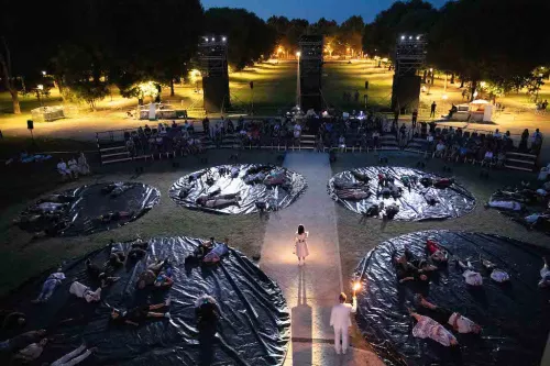 Arriva finalmente a conclusione, dopo una forzata pausa causa Covid, la Divina Commedia del Teatro delle Albe, ideata da Marco Martinelli e Ermanna Montanari. Come per Inferno del 2017 e Purgatorio del 2019, realizzati per Ravenna Festival anche in quest’ultimo atto (Purgatorio anche con Matera capitale europea della cultura), si parte dalla tomba di Dante, dietro la chiesa di San Francesco. Aprono il viaggio fuori dalla paura, verso la purificazione e la conoscenza, le parole finali della prima terzina del Proemio: …vita… oscura… smarrita.