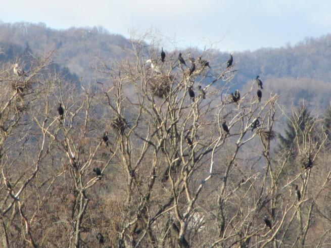 Nidi di piccoli uccelli e condominio di cormorani e aironi