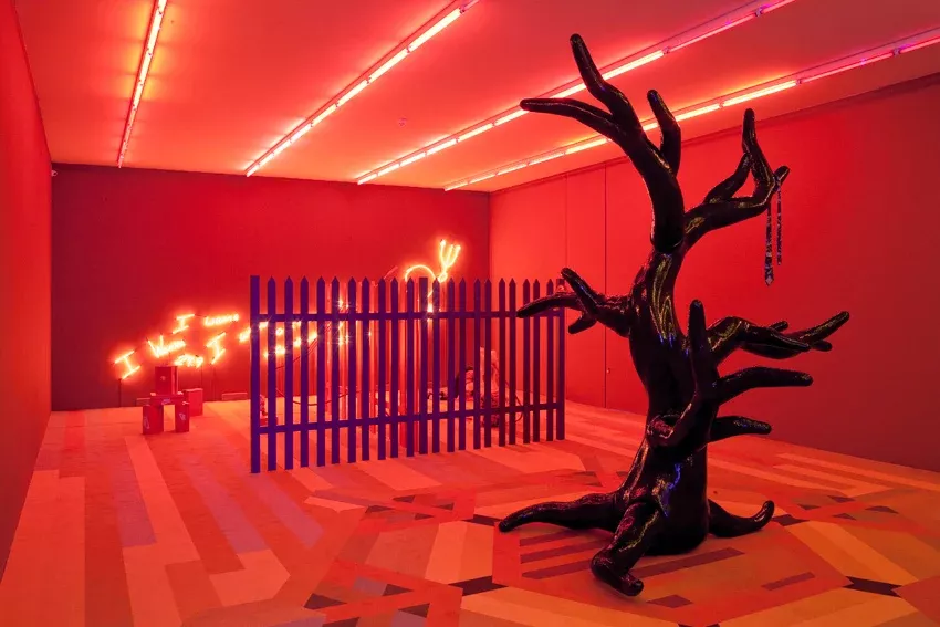 Noi europei andiamo per citazioni, gli americani vanno per associazione: ha senso questa distinzione? Me l’ha fatta pensare la mostra di Alex Da Corte – di origine venezuelana, ma statunitense di adozione – in corso alla galleria Giò Marconi a Milano (fino al 19 luglio). Di sicuro non mi viene in mente nessun europeo che possa mettere insieme una mostra come questa.