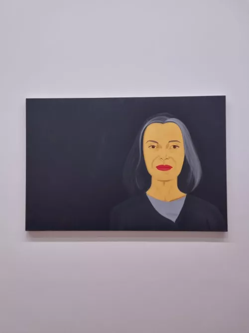 Il regno della banale realtà, per Katz, è terreno di esercitazione continua ma anche di fuga sottile: i placidi individui che popolano le casette al mare nel Maine, i suoi amici e personaggi letterari che provengono dalla scena intellettuale di New York sono figuranti astratti e radicali, per quanto volti noti (i quadri hanno il nome delle persone ritratte) e realissimi. Katz, in un filmato realizzato dal Guggenheim, mentre cammina in un prato inondato di luce dice di sé una cosa fondamentale. “Si impara lentamente” e lentamente, “però, la pittura restituisce ciò che hai appreso”. La fredda distanza nella quale i suoi soggetti, pur emotivi e vibranti, sono collocati da lui stesso, non gli impedisce di farci cogliere la verità del suo messaggio; la pittura è ciò che è. Non altro.