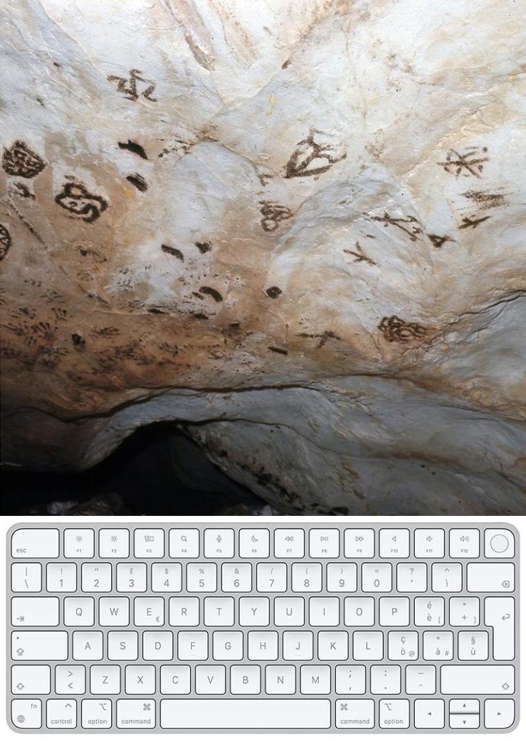 Segni ritrovati nella Grotta dei Cervi, Porto Badisco, Otranto / Keyboard con segni ideografici e alfanumerici.