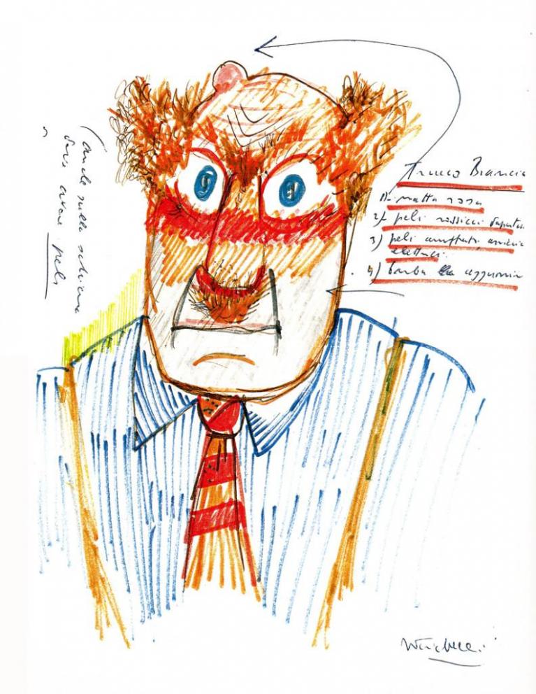 Disegno di Fellini per il trucco di Armando Brancia nel film.