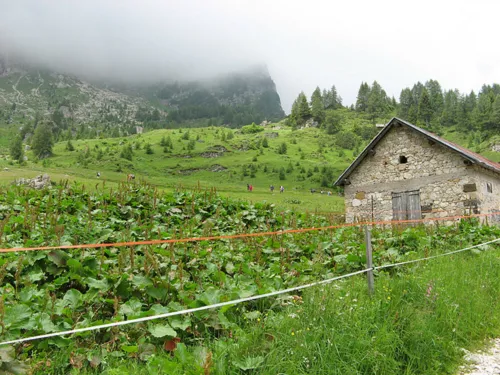 Ma quando hanno alzato gli occhi dai propri passi e si son guardati intorno, han perso il filo e la lingua. Ora, contemplano anch’essi a bocca aperta il panorama: i boschi di conifere che sfidano l’inclinazione dei pendii, le dolomiti che incombono monumentali su prati inorgogliti dalle piogge copiose e frequenti, le nubi candide e soffici, il cielo celeste a portata di dita…