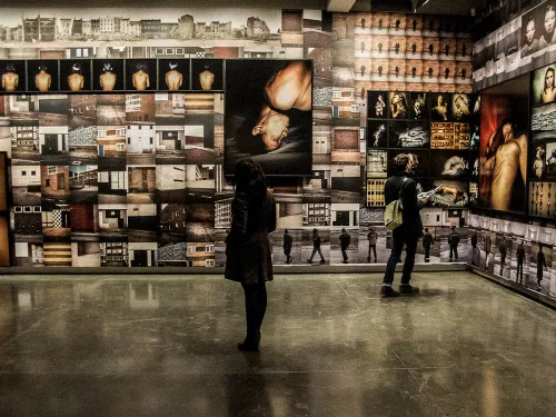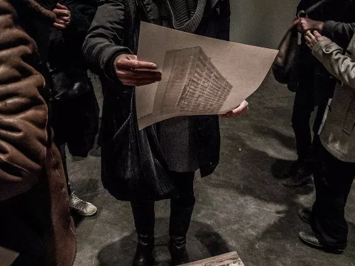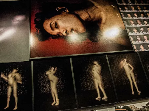 Entrare in una galleria o in un museo per vedere una mostra, fermarsi davanti a un oggetto, distrarsi e poi camminare attraverso le stanze, far scivolare il proprio sguardo da un punto a un altro incrociando gli altri visitatori, soffermarsi anche sui loro movimenti e i loro corpi che ostacolano o interagiscono con la visuale, decifrare la struttura degli spazi e i piccoli contrasti determinati dalle uscite di sicurezza e dai cartelli esplicativi. Con Ti guardo Talos Buccellati tenta di indagare con il solo mezzo fotografico gli imprevisti e le interferenze che segnano lo sguardo durante una visita a un’esposizione.