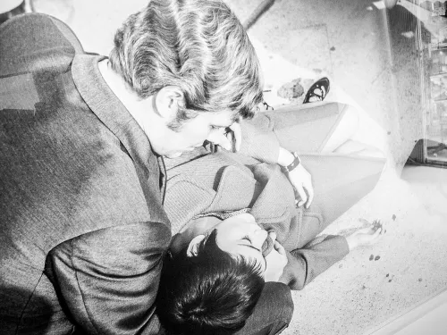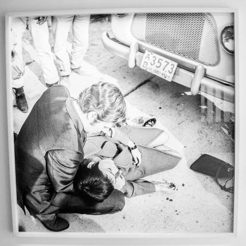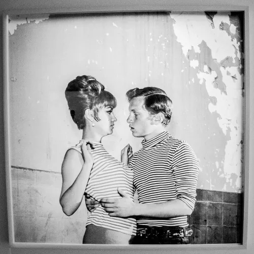 Entrare in una galleria o in un museo per vedere una mostra, fermarsi davanti a un oggetto, distrarsi e poi camminare attraverso le stanze, far scivolare il proprio sguardo da un punto a un altro incrociando gli altri visitatori, soffermarsi anche sui loro movimenti e i loro corpi che ostacolano o interagiscono con la visuale, decifrare la struttura degli spazi e i piccoli contrasti determinati dalle uscite di sicurezza e dai cartelli esplicativi. Con Ti guardo Talos Buccellati tenta di indagare con il solo mezzo fotografico gli imprevisti e le interferenze che segnano lo sguardo durante una visita a un’esposizione.