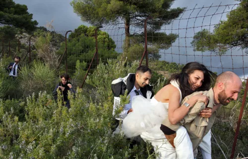 Come se non bastasse hanno pensato di camuffare il tutto da matrimonio per ridurre il rischio di controlli e anche perché... se follia deve essere...