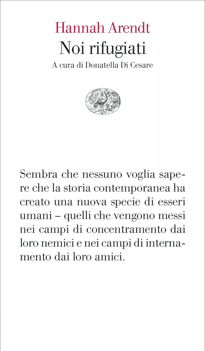 Sacrificio individuale, innanzitutto come rinuncia al proprio mondo linguistico (quindi vitale), e redenzione di chi un mondo ce l’ha ancora (i cittadini del Paese ospite) ma riceve il dono, nella figura concretissima del rifugiato, di un’esperienza radicale, non escludono certo la chiave adottata da Giorgio Agamben qualche anno addietro (We Refugees, in 49 “Symposium: A Quarterly Journal in Modern Literatures” 2 (1995), pp 114-119) e Di Cesare nel bel testo che correda il saggio di Arendt. Agamben legge Noi rifugiati come ciò che rompe l’identità tra natività e nazionalità, là dove il rifugiato mette in crisi la “finzione originaria della sovranità”. Il rifugiato è l’eccezione che denuncia l’impostura del confine e scardina la triade reificata, se non santificata, di Stato/nazione/territorio. Di Cesare richiama la celeberrima formula arendtiana del “diritto ad avere diritti” come ciò che svela, e a un tempo smentisce quale paralogismo, il “paradosso dei diritti umani che si è rivelato il paradosso stesso della democrazia” (p. 84). L’idea che la democrazia possa stabilire un al di qua e un al di là del diritto, e che chi abbia la tragica sfortuna di stare più là che qua non possa godere di alcuna protezione, è per Agamben e Di Cesare la meno nobile delle finzioni fondative dei regimi liberali nati entro la cornice statuale.