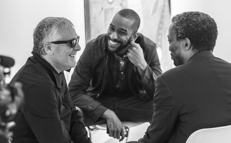 Da sinistra: Marco Scotini, Direttore artistico di FM Centro per l’Arte Contemporanea; Adama Sanneh, Direttore dei programmi di Fondazione lettera27; Simon Njami, Scrittore, Curatore, Direttore artistico della Biennale di Dakar 2016 e 2018.