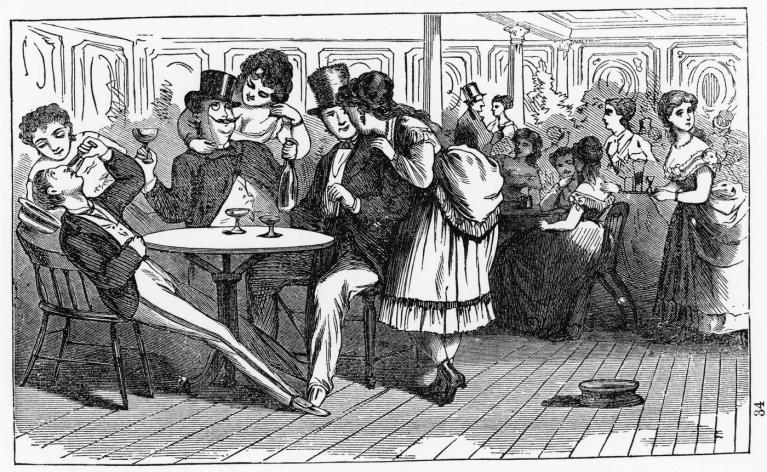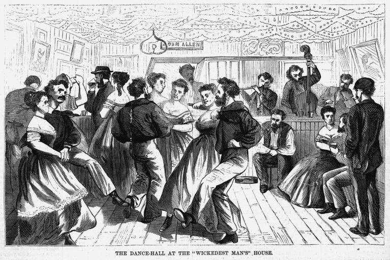 Accanto alle testimonianze dirette, alle illustrazioni, alle locandine, ai testi delle canzoni, agli spartiti, Cockrell ha spulciato i giornali dell’epoca, con un occhio di riguardo per la stampa scandalistica, forse meno attendibile sul piano giornalistico ma assai abile nel restituire il profumo del demi-monde; ha passato al setaccio i documenti giudiziari che dettagliavano le risultanze delle irruzioni della polizia nei locali a luci rosse, e fatto altrettanto con i rapporti dei detective infiltrati nel mondo della prostituzione per conto di questa o quella associazione nata al fine di sradicare il vizio dalla città. Ne è scaturito un racconto appassionante, che descrive il mondo del sottosuolo newyorchese della seconda metà dell’Ottocento con estrema precisione e vividezza, regalando non poche sorprese. Scopriamo, ad esempio, che i saloon da vecchio west del cinema americano non erano in verità dei saloon, ma delle vere e proprie sale da ballo nate a immagine della sala dell’ex-pugile Harry Hill a New York, un genere di locale che si diffonderà poi a macchia d’olio nel resto del paese per soddisfare chi – cowboy, cercatori d’oro, ferrovieri, cacciatori, avventurieri – era in cerca di un luogo che offrisse riuniti sotto lo stesso tetto alcol, sesso, musica, ballo e gioco d’azzardo.
