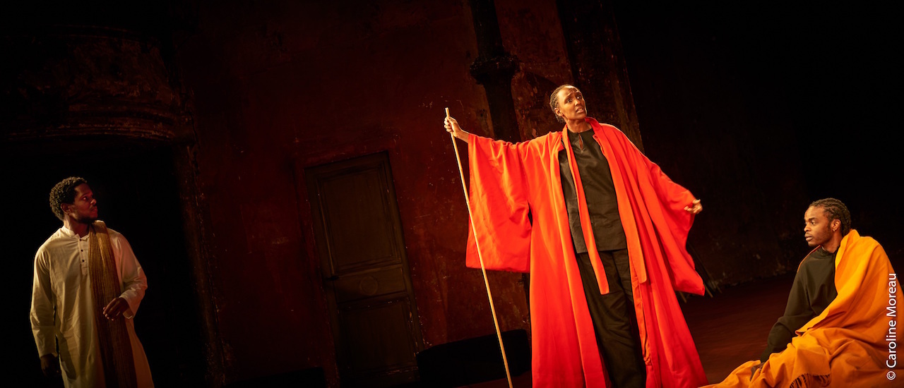 Tre uomini e una donna che parlano, alcuni bastoni appoggiati alla parete di fondo, un percussionista giapponese, Toshi Tsuchitori, che siede sulla destra del proscenio con il suo tamburo tra le gambe, un po’ in disparte come un testimone. Non la musica, ma solo una parte di essa, il rythmos. Pochi colori, quelli dei mantelli e degli scialli, il rosso e il giallo, essenze vivide e accese dalle luci di Philippe Vialatte come in un quadro di Rosso Fiorentino. La rigorosa economia di un regista che ha inflitto il colpo di grazia al teatro come opera d’arte totale e sommatoria di altre discipline artistiche ma che in nessun altro spettacolo, nemmeno in quelli che accompagnano la sua lenta uscita di scena, è apparsa altrettanto radicale, altrettanto nuda. Eppure è dal poco di una messinscena visibilmente concentrata su ciò che resta, su ciò che viene dopo – dopo la catastrofe, dopo il Mahabharata di cui ha scontornato un episodio, persino dopo il teatro di cui Brook, come suggerisce Massimiliano Civica, mantiene soltanto la punteggiatura – che si srotola un vertiginoso intarsio di storie che contengono altre storie.