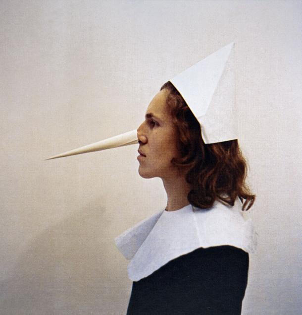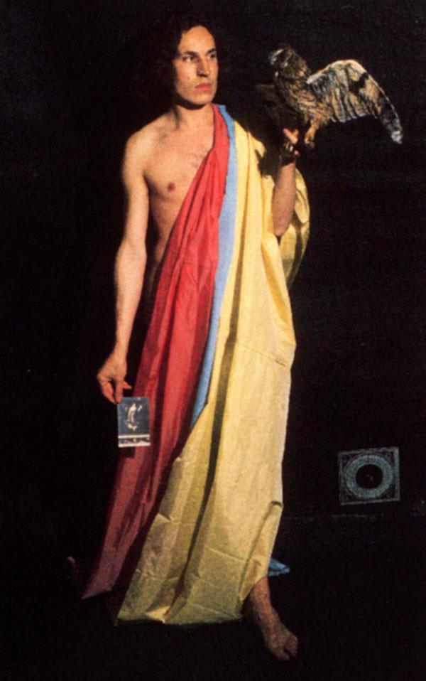 Il divenire-altro di Ontani, sin dal già menzionato Bacchino, manifestamente si esibisce come citazione. Cioè, nel suo linguaggio come abbiamo visto, quale concezione/riassunto di un itinerario di conoscenza. Nel caso del Bacchino a venire citata è una figurazione determinata, quella appunto del Guercino (ma pensiamo anche, nello stesso ’70, alla coppia degli scandalosi, sessualmente invertiti, MayaGoya, Desnudo e Vestito); più spesso il travestimento rinvia invece a una galassia di riferimenti fra loro ibridati, cioè connessi fra loro dalla memoria collettiva. Eloquente il programma di una serie di performance all’Attico di Roma, sempre nell’annus mirabilis 1974: in cui  nell’arco di due settimane si alternano tre diverse figure – Don Quijote de la Mancha, Don Giovanni e Superman – in cui il possibile riferimento diretto delle prime due a una determinata fonte letteraria o drammaturgica è reso incongruo dalla terza presenza, appartenente invece all’immaginario della cultura popolare cui tutte e tre, indipendentemente dalla rispettiva provenienza, in effetti partecipano. Così ibridando il linguaggio, o meglio il meccanismo del pensiero, della performance con quello della pop art. Il medesimo procedimento ritroviamo negli exploit di Ontani-Cristoforo Colombo (in occasione dello sbarco in America, ovviamente), di Ontani-Dante Alighieri (frequentissimo – dove appunto il riferimento non è alla testualità dantesca ma alla sua icona appunto popolare, col naso aquilino in bella evidenza), di Ontani-Pinocchio eccetera.