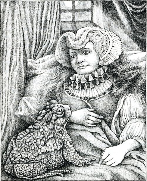 Anche nel Principe ranocchio, è la principessina a operare la trasformazione del principe da animale a uomo, ma la metamorfosi avviene sotto il segno della rabbia: dopo aver accettato con malcelato disgusto, sotto ingiunzione paterna, che il ranocchio sieda alla sua tavolina e mangi dal suo piattino d’oro, di fronte alla richiesta dell’animale di dormire con lei nel suo lettino, la protagonista perde il controllo: “Allora la principessa andò in collera, lo prese e lo gettò con tutte le sue forze contro la parete: - Adesso starai zitto, brutto ranocchio! - Ma quando cadde a terra, non era più un ranocchio: era un principe dai begli occhi ridenti.”In questo caso, la bellezza della protagonista non sembra affatto coincidere con una virtù salvifica. Il lettore, benché informato che nelle fiabe una eccezionale beltà femminile possa essere lo specchio di una perfezione interiore, ne aveva già qualche sospetto. Fin dall’inizio ha intuito l’eccentrica personalità della protagonista. Uno degli elementi di maggior fascino di questa ragazzina meravigliosa sta nel frequentare d’abitudine uno dei meandri più tenebrosi del regno, la selva, nell’annoiarcisi e, nei pressi di una profondità d’abisso, nel giocare, solitaria, con una palla d’oro. Nientemeno. Disposta, pur di riavere la palla smarrita nella fonte nera, a cedere al ranocchio i suoi vestiti, le sue perle e i suoi gioielli, magari la sua corona d'oro, ma non il suo tavolo, il suo piatto, il suo bicchiere e il suo letto (dimostrando una scala di priorità magari non saggia, ma di ogogliosa consapevolezza), fa promesse con disinvoltura per poi, con altrettanta disinvoltura, disattenderle. Non ci soprende dunque che costei, infuriata, scagli contro il muro il ranocchio testone, determinato a ottenere quanto gli spetta. Un gesto di inaudita violenza, ma, forse, per questo, anche più coraggioso di un bacio. Non per nulla, a proposito di questa fiaba ne Il mondo incantato Bettelheim commenta: “La fiaba ammettendo che la rana (o quale che sia l’animale in questione) è ripugnante, ottiene la fiducia del bambino, e quindi può ingenerare in lui la ferma certezza che, come essa racconta, a tempo debito questa repellente rana si rivelerà come il più affascinate compagno per la vita.” Che il principe, in questa versione dello sposo animale, abbia più bisogno di un brutale rifiuto che di una benevola accettazione, lo dimostrano i “begli occhi ridenti” che sfoggia alla sua prima apparizione: quel che meno ci aspetteremmo, a questo punto della storia. E quello che, disorientandoci per l’ennesima volta, fa zampillare l’incanto di una prospettiva di pensiero del tutto nuova.