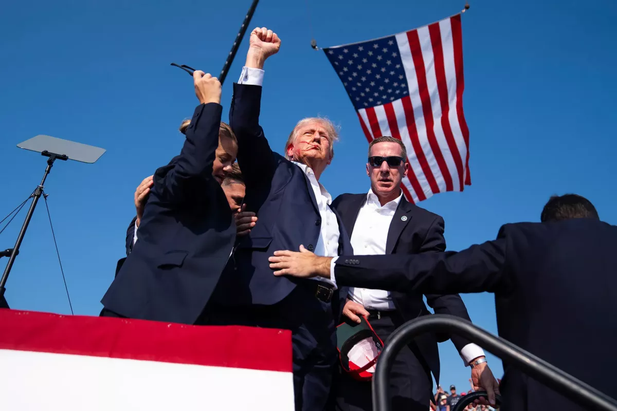 “Quasi subito dopo gli spari al comizio di Donald Trump a Butler, in Pennsylvania, l'ex Presidente ha avuto un sussulto sul palco, si è portato una mano al viso ed è caduto a terra. Negli attimi di caos che sono seguiti, Trump è stato aiutato a rialzarsi dagli agenti del Servizio Segreto e ha dato una prova definitiva di vita: ha alzato il pugno destro verso il cielo e ha urlato alla folla "Lottate!". Nella foto circolata poco dopo, scattata da Evan Vucci dell'Associated Press, Trump è stagliato contro un cielo azzurro e limpido, mentre quattro agenti del Servizio Segreto lo stringono. Uno di loro guarda dritto nell'obiettivo, gli occhi protetti dagli occhiali scuri. Una bandiera americana sembra quasi veleggiare sulla scena. Trump ha le labbra serrate, gli occhi stretti e il mento un poco sollevato. Strisce di sangue colano dall'orecchio destro e sulla guancia. Lo sguardo è rivolto ben oltre quello che la macchina fotografica può catturare – al pubblico, al futuro – ed è uno sguardo di sfida. Chiunque abbia cercato di ucciderlo, ha fallito. È già l'immagine indelebile della nostra epoca di crisi e di conflitto politico” (The Attempt on Donald Trump’s Life and an Image That Will Last | The New Yorker)