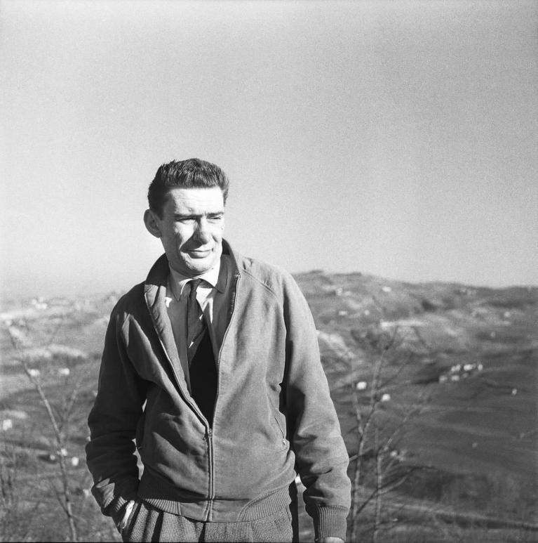 La scrittura di Beppe Fenoglio, la tonalità delle sue pagine, il respiro delle sue narrazioni si intrecciano profondamente con il paesaggio delle Langhe e con la città di Alba, dove Fenoglio è nato cento anni fa il primo marzo 1922, e da cui nell’arco della sua vita non si è quasi mai allontanato. Nello straordinario patrimonio di immagini fotografiche dell’amico Aldo Agnelli, Fenoglio compare spesso ai margini di uno dei sentieri che ha percorso nei giorni del suo arruolamento fra i partigiani azzurri dopo l’8 settembre del ’43, con in tasca una matita e i fogli di uno di quei taccuini che suo padre, Amilcare Fenoglio, usava per i conti di bottega nella macelleria a pochi passi dal Duomo. I boschi sulle colline intorno ad Alba, i rittani in cui trovare rifugio, le cascine dei contadini, le cense, i filari di viti, i ciliegi, gli olmi, i sentieri fangosi attraversati durante la Resistenza e soprattutto l’Alta Langa di San Benedetto Belbo, dove una parte della famiglia aveva le sue origini, sono il grande corpo a cui Fenoglio si affida, ascoltandone le voci e assorbendone tutti gli umori.