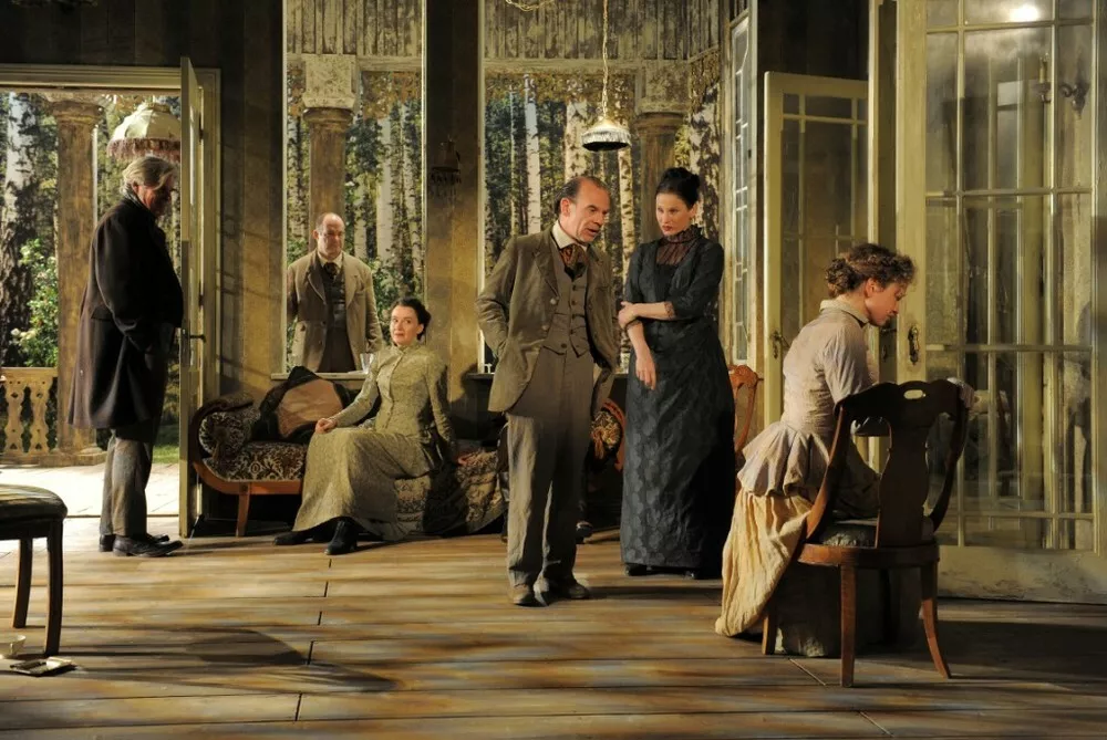 Al contrario, il Platonov di Hermanis risulta quasi “rivoluzionario” per la classicità della sua messa in scena. Il regista lettone, fedele alla sua poetica, inscena Cechov seguendo un iperrealismo quasi fastidioso. Ogni dettaglio è ricercato e studiato, i personaggi sono rinchiusi nel loro piccolo mondo antico, perfettamente separati dal pubblico da una quarta parete non solo ideale, bensì anche materiale: una vetrata che isola i personaggi dal pubblico e contemporaneamente pone le distanze tra i diversi personaggi. Si crea in questo modo un’atmosfera d’incomunicabilità, acuita dalla simultaneità dei discorsi, di modo che diventa difficile cogliere ogni conversazione, ogni singola battuta. Eppure la parzialità della comprensione – nonostante il testo di Cechov sia riprodotto integralmente – nulla toglie alla fedeltà di Hermanis all’originale. Anzi, è proprio la simultaneità e il sovrapporsi dei piani a dare l’idea di verità e a rendere così credibile il testo.