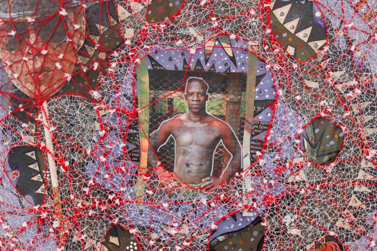 In questo lavoro di bricolage si compongono così ogni volta spazi stratificati di senso, zone di contatto e frizione fra forme di vita diverse. Così accade ad esempio nel frequente richiamo all’oceano che percorre le sue opere, dove si sovrappongono il relax balneare degli occidentali e della borghesia locale, la memoria della tratta, l’inquinamento petrolifero e il mondo dei morti dei popoli del Golfo di Guinea.