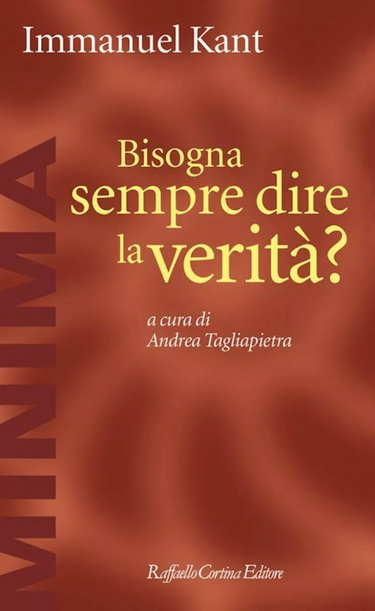 Questa verità crudele, questa perversa «macchina logico-veritativa del linguaggio» di Kant ma anche, ribadiamo, di Spinoza, viene respinta da Benjamin Constant in un saggio del 1797, riportato nella racolta di Tagliapietra, allorché il giovane polemista francese osa attaccare l'anziano  filosofo tedesco con l'argomento del diverso peso dei princìpi morali: ci sono i princìpi primari, assoluti e universali, e i princìpi cosiddetti intermedi, che fanno discendere i princìpi primi fino a noi, adeguandoli alle nostre situazioni e ai nostri interessi. In questo modo, conclude Constant, il principio morale per il quale dire la verità è un dovere, «se fosse preso in modo assoluto e isolato, renderebbe impossibile ogni tipo di società. Ma ... nessun uomo ha diritto a una verità che nuoce ad altri». La verità crudele è ricusata anche da Tagliapietra in nome della pietà verso la vittima silenziosa cui nuoce la verità delatoria. Sulla scia di Agamben sostiene infatti Tagliapietra che «la verità ... non è una mera informazione esatta ... ma anche un prendere posizione per ciò che si dice, un esserci in ciò che si afferma». Se confrontata con la fiducia, la verità diventa ai suoi occhi «una forma di vita che non si esaurisce nella sola dimensione dichiarativa del linguaggio» (66-67). Come viene respinta – la posizione di Kant – da molti autori e dalla maggior parte delle persone che adducono argomenti di buon senso e di empatia con le vittime. Dopo il colpo inferto al Kant gnoseologico dal newrealismo, ecco comunque un rinnovato attacco al Kant etico, troppo rigoroso per i nostri tempi edonistici e happycratici.