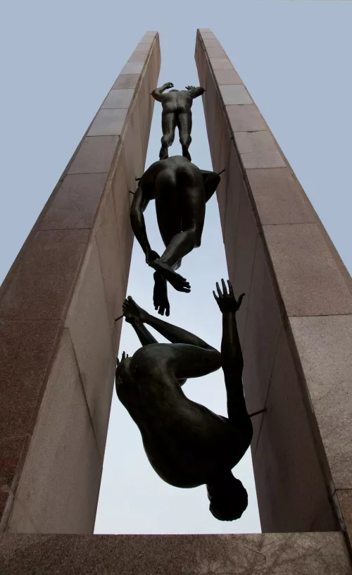 Alla città di Busto Arsizio mi lega il ricordo del liceo, che ho frequentato agli inizi degli anni settanta, e di un monumento chiamato “Tre culi” a causa di tre figure nude sospese a mezz’aria con le terga rivolte ai passanti su un lato della piazza. L’iscrizione alla base spiega che il monumento è dedicato alla memoria dei caduti, ma il deplorevole titolo assegnato dai Bustocchi ha la meglio sull’iscrizione: le tre figure in bronzo, ahimè, non richiamano alla mente il sacrificio per la patria dei nostri caduti.