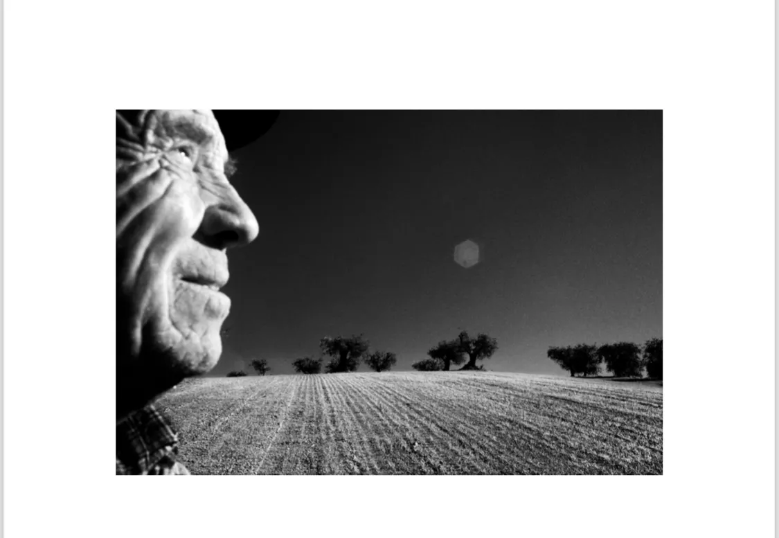 Siamo dunque in una terra illuminata, popolata da chi è rimasto. “Non fanno che ripetere che sono rimasti pochi [...] che una volta la vita era diversa.” riporta Cicconi Massi all’interno del catalogo della mostra, edito dall’editore Emuse. In un’intervista, Mario Giacomelli in merito al suo lavoro del 1968 dedicato ai contadini marchigiani già affermava: “La campagna è cambiata. Ѐ diversa, adesso è una terra piatta, passa una macchina che taglia, miete, macina, fa tutto. Non c’è più fantasia. Arrivano questi bestioni e non c’è più gioia in chi lavora, in nessuno.” Una rivoluzione simile a quella che negli anni Trenta spopolò gli stati del Sud degli Stati Uniti causando la gigantesca migrazione dei lavoratori verso la California.