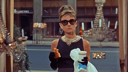 Nel film Colazione da Tiffany, quando Holly Golightly canta, lo fa sulle note di Moon River, non su quelle del musical Oklahoma! La prima volta che la incontriamo è proprio sulla melodia di quella canzone. Un taxi avanza lungo la Quinta Strada di New York e si ferma davanti al numero 727. Siamo poco oltre l’alba. Le strade di Manhattan sono deserte. Dal taxi scende una donna in abito da sera, una collana di perle al collo e un paio di occhiali da sole sul naso. Mentre tutto questo accade, e mentre la donna, dal marciapiede, si avvicina alla vetrina della gioielleria Tiffany, scorre la melodia di Moon River. Il tema è affidato a uno strumento che meglio di ogni altro dà conto della presa della città da parte della provincia: un’armonica a bocca. Non un sassofono, un clarinetto o una tromba come sarebbe probabilmente successo ai tempi di Gershwin, ma un’armonica a bocca. Stando alla caratterizzazione musicale sarebbe più verosimile veder sbucare John Wayne a cavallo o un pistolero in fondo allo stradone di una città del vecchio west, e invece siamo in compagnia di una donna che fin dal suo apparire dichiara come eleganza urbana e disinvoltura non siano di pregiudizio a una colazione da stazione centrale in attesa della coincidenza ferroviaria (bicchiere di cartone, croissant ancora caldo da intingere nel caffè e da divorare in piedi, sulla banchina). Come se nulla fosse. Anzi, come se quella fosse una colazione normale quando abiti a New York e stai per andare a dormire alle prime luci del mattino. Una sequenza che ha fatto epoca.