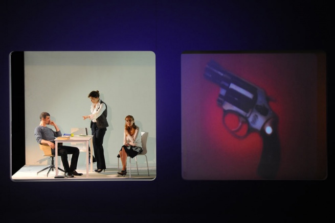 Ora sul palco del Candide di Arcuri questo gioco non si interrompe mai, riprende e prosegue da ogni cambio scena, ed è un gioco di immagini tra specchi dove ogni nuova identità è inseparabile da quella precedente. Cunegonde è l’attrice, la giovane, acerba attrice che nel prologo interpreta Cunegonde, e Federica Zacchia sembra appena uscita dal romanzo di Voltaire: “fresca, grassottella, appetitosa”, come la descrive il primo capitolo del Candide, questa nota di frivolezza la mantiene inalterata persino quando, nel quadro successivo, entra nei panni di Sophie, un’adolescente imbronciata che, durante una festa di compleanno, elimina la propria famiglia a ritmi cakewalk, con una progressione splatter tipica della musica a programma dei testi di Ravenhill – dove quando si comincia a sparare o a torturare non la si finisce più – e in genere di un teatro britannico che, per dirla con Edward Bond, “parla di violenza con la stessa naturalezza con cui Jane Austen parlava di buone maniere”. Ma anche, se ci si pensa bene, tipica della frugalità con cui lo stesso Voltaire accumula eventi e dettagli raccapriccianti lungo la strada del suo “racconto filosofico”.