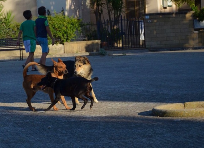 Noto subito che i cani di queste contrade non vanno mai al guinzaglio. Non sono propriamente dei randagi, ma scorazzano liberi annusando qua e là e ritrovandosi ogni tanto, quasi casualmente, in branchi composti da elementi di forma eterogenea e numero variabile. Qualcuno di loro vive in casa, entrando e uscendo a suo gusto, qualcuno dorme fuori, nutrito e curato da una o più famiglie del quartiere. Sono magri, un po' arruffati, con un'aria sana. Qualcuno ha il collare, qualcuno non ce l'ha, ma nessuno di loro porta la medaglietta con inciso il suo nome da una parte e il numero di telefono del proprietario dall'altra. Mi adeguo subito alla faccenda del guinzaglio: non lo porto più con me, pensando che così la cagnolina Ginni si sentirà a suo agio fra i nuovi compagni. Uno assomiglia al Vagabondo di Walt Disney, ma è nero con una macchia bianca sul petto, molti peli grigi attorno al muso, il passo agile e un poco sghembo.
