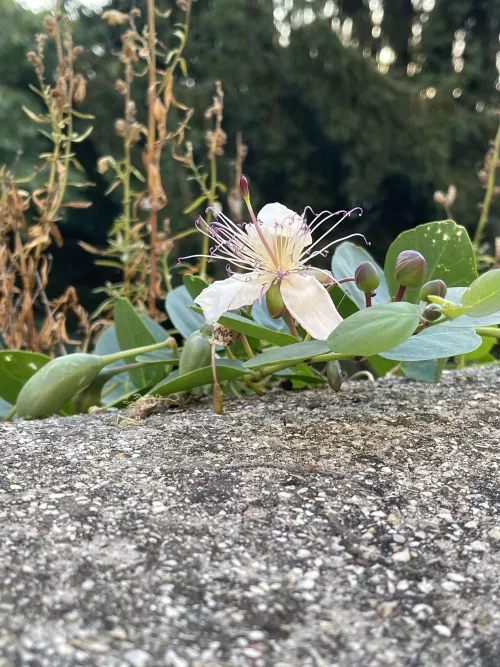 Invidio chi possiede giardini favoriti da inverni clementi tali da poter mettere a dimora i capperi tra le pietre a secco di un muricciolo o tra i sassi di una ripa ben esposta: a settembre si godono ancora gli ultimi fiori tra i gonfi cucunci.