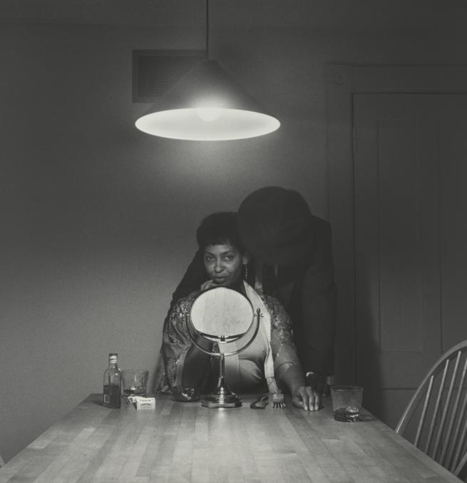 Un mondo femminile, quello raccontato da Weems, che parla però un linguaggio universale. Perché quella donna di colore (da Kitchen Table Series, 1990), ritratta all’interno di uno scarno spazio domestico, di fronte a un tavolo da cucina, intenta in mansioni e ruoli diversi (madre, moglie, figlia, amica), oltre a narrare parte della sua biografia (il personaggio ritratto è infatti lei stessa), parla del ruolo della donna all’interno della struttura familiare e sociale contemporanea. Come cerchi concentrici, partendo dalla condizione femminile, la sua narrazione si amplifica, abbraccia le moltitudini umane: la donna diviene simbolo dell’emarginazione e della volontà di riscatto.