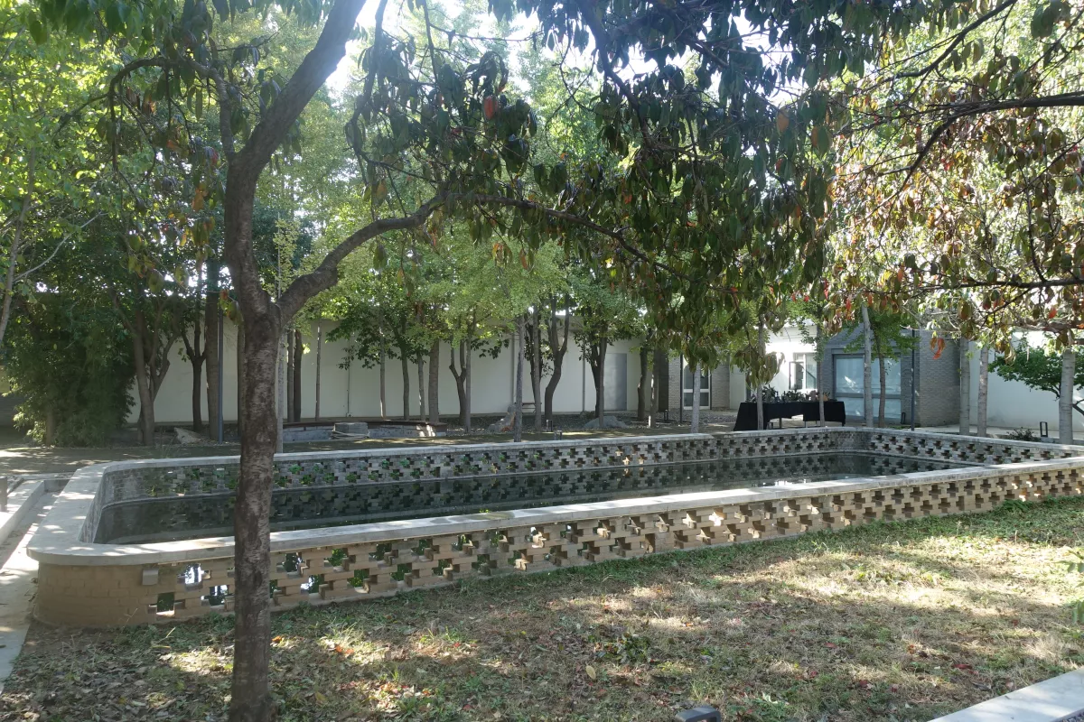 Il visitatore che, uscito al casello dell'autostrada di Xinmi xi 新密西 (Xinmi Ovest) si ferma sullo stradone polveroso (guodao 国道, o strada statale), battuto ininterrottamente da lunghi camion sferraglianti, ed entra nel cortile interno alberato, si trova proiettato in una specie di hortus conclusus che stupisce piacevolmente e disorienta.