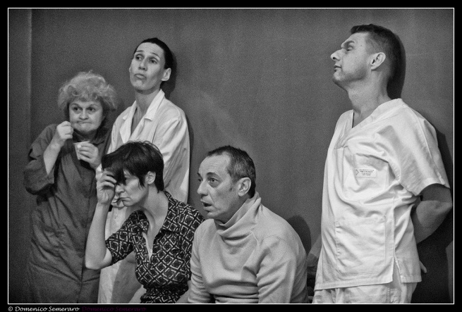 “Ho selezionato una serie di ritratti di internati fatti dal pittore Gino Sandri, anch’egli ricoverato e morto a Mombello”, chiarisce Paola Manfredi a proposito del corposo lavoro fatto con e sugli interpreti, Giorgio Branca, Elisa Canfora, Antonello Cassinotti, Alessandro Luraghi, Laura Montanari, Raffaella Natali, Loredana Troschel, Lilli Valcepina, Dario Villa, sorprendenti per sensibilità, precisione e cura della naturalezza. “Poi ho chiesto agli attori di scegliere alcuni di quei volti, di quei corpi disegnati, alcune di quelle posture, e a partire da quelle scelte hanno cercato una camminata, una parlata, un gesto ossessivo. Ma tutto è come scaturito da sé, non c’è stata una decisione a tavolino. Ogni volto ritratto era una maschera che li conduceva a un carattere, a una personalità che dovevano svelare e far vivere. Hanno così creato personaggi che sono in realtà la sintesi di più persone realmente esistite e che a Mombello hanno vissuto, sofferto, atteso”.