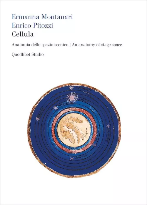 Cellula è elemento primo, nucleo di possibilità, promessa di forma, corpo in potenza. L’anatomia, invece, è già indagine sul corpo formato, aggregato di cellule, perlustrazione del realizzarsi e dell’imporsi di una possibilità su tutte le altre. Ma la specificazione ci dice che quel corpo di cui si tenta l’anatomia è spazio scenico, l’intera scena come corpo, insomma, il luogo in cui ogni possibilità è rimessa in gioco, richiamata in causa per mettere in discussione e in crisi il già costituito, il mondo per come lo conosciamo. Per smentirne le apparenze e manifestarne origini ed essenze. Ed ecco che, ancora in copertina, dalle parole del titolo e del sottotitolo che abbiamo osservato fin qui, si genera l’immagine: non quella che ci si aspetterebbe – nessun diretto riferimento allo specifico teatrale – bensì il cosmo intero, custodito e racchiuso in un’illustrazione circolare del ’400. Un’illustrazione che sembra simulare al contempo proprio la raffigurazione di una cellula, sezionata a rivelare i propri strati, membrane e reticoli e dunque a svelare come quel salto di piani sia in realtà un movimento circolare che annuncia, così, l’essenza primaria del libro: cellula e cosmo, a ben guardare, come la medesima cosa.