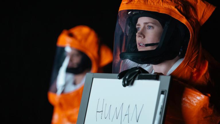 La narrazione prende le mosse da un'atipica invasione aliena. Se la tradizione più inconcussa del genere prevede – da La guerra dei mondi in poi – un più o meno immediato risvolto bellico; se in epoche più recenti alcuni scrittori hanno brevettato diverse forme di interazione (l'infezione virale per il Michael Crichton di Andromeda, la colonizzazione per la Stephenie Meyer post-Twilight di The Host), variamente imitati da registi e sceneggiatori (basti pensare, solo per rimanere in anni recenti, alla convivenza coatta nelle bidonville di Johannesburg immaginata da Neill Blomkamp in District 9); Arrival sceglie una soluzione intermedia e, almeno inizialmente, ambigua. I giganteschi mezzi di trasporto extraterrestri, vagamente simili a gusci di mitili, gravitano silenziosi e incombenti su dodici località della Terra. Gli alieni desiderano comunicare, ma il loro linguaggio è incomprensibile. Così il governo statunitense – uno dei gusci staziona in Montana – invia presso la residenza dei visitatori un reggimento dell'esercito e alcuni scienziati, tra cui Louise Banks, una stimata linguista (in realtà decisamente giovane per essere così stimata, tanto che The Guardian, nel recensire il film, non si è lasciato sfuggire una stilettata intrisa di tipico umorismo british, domandandosi se Noam Chomsky non fosse disponibile e se le sue teorie sulle strutture profonde del linguaggio non potessero essere di maggior aiuto), tanto preparata e intuitiva quanto titubante. Malgrado ciò, è proprio lei a stabilire un contatto con gli alieni, imparando a interpretare il loro alfabeto fatto unicamente di cerchi, le cui sbavature indicano – a seconda della forma, della posizione e della grandezza – fonemi diversi. Ma il linguaggio è materia liquida e, per i non iniziati, decisamente infida, e una piccola incertezza della dottoressa nella traduzione di un vocabolo rischierà di scatenare una sorta di “rappresaglia preventiva” da parte delle maggiori superpotenze. D'altronde, non fu Wittgenstein a dire: «Se un leone potesse parlare, non lo capiremmo comunque»?