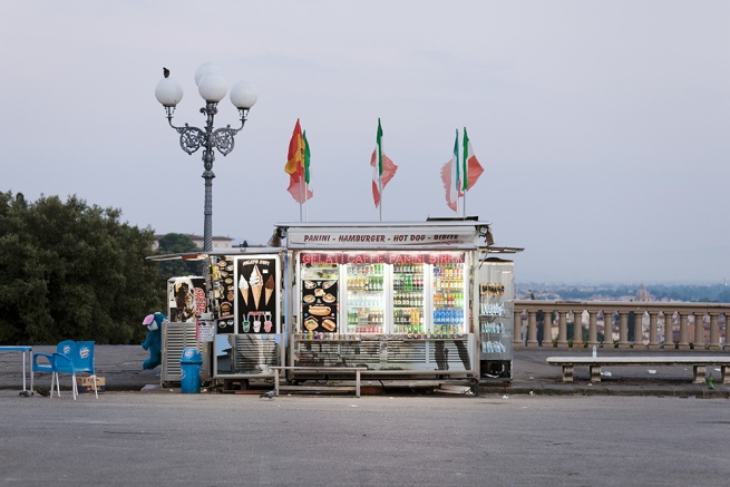 Completely restored to this city in its most pandering view of the river – the one from Piazzale Michelangelo – as if restored to a sappy Viennese embrace with parental tears, I retrace my steps to the car. Welcoming how the bluest part of evening spurs a drink stand to turn on its neon lights, like a courtship where each draws her own benefit, with different ends in mind.