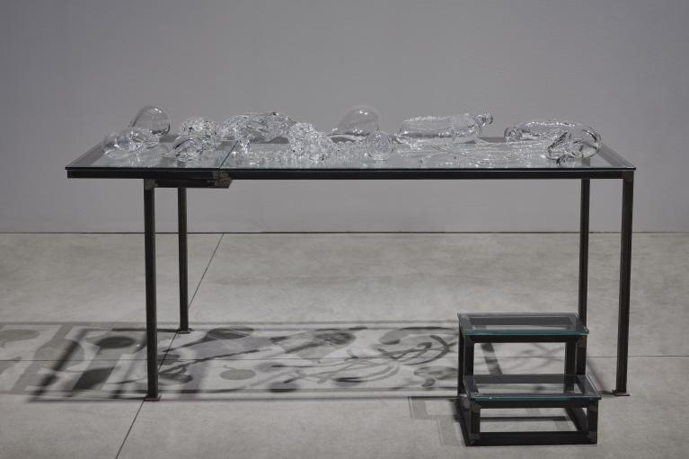 A.S. – In questo che dici, credo, trovo la ragione dell’attualità di questa mostra. La Purification Room, cui mi rimandi, mi pare principio di risignificazione e di trasformazione. Mi sono sentita immobile come gli oggetti, ricoperta di argilla come gli oggetti, forse anche monocroma come gli oggetti, eppure totalmente dislocata. Tutto è solido, congelato, per sempre, e, nello stesso tempo, non è lì davanti a te e, soprattutto, non è così semplice pensare che sei tu lì, davanti a quella scena. Mi ha fatto quasi male leggere, in quella paralisi di silenzio, l’anno: 2000. L’anno della morte, l’ultima opera. Quasi un testamento a suggerire, che cosa? Forse il sogno, il cerchio, il Tutto? Vedi, ci casco sempre: perdo i riferimenti e domando un nuovo orientamento. Quello che ho sentito, invece, mi pare di poterlo raccontare nella forma del: io, ora, dove sarò stata? Dove sarà stato questo io inedito già da sempre qui. Così credo di aver guardato anche le viscere di cristallo sul tavolo-lettino, tavolo di dissezione (Crystal Landscape of an Inner Body (Serpent), 2000). Sottili, fragili, si potrebbero rompere – il cuore, l’intestino – ma, insieme, trasparenti e riflettenti. Elementi minimi, parti del tutto insufficienti, non autonome, ma, lì, principio di moltiplicazione: risuonano con il mondo. Una a una. Non-specchi che funzionano da specchio. È a partire da queste impressioni che ho questa idea, l’ho avuta forte davanti a Purification Room, di un’attualità. Non so se quando dico attualità dico questo tempo ultimo, ma credo di sì, credo che il terzo di cui mi dici sia qualcosa che si inscrive in questa nuova esperienza che abbiamo fatto del corpo – della sua consistenza, della sua inaggirabilità – e del tempo – della linearità.