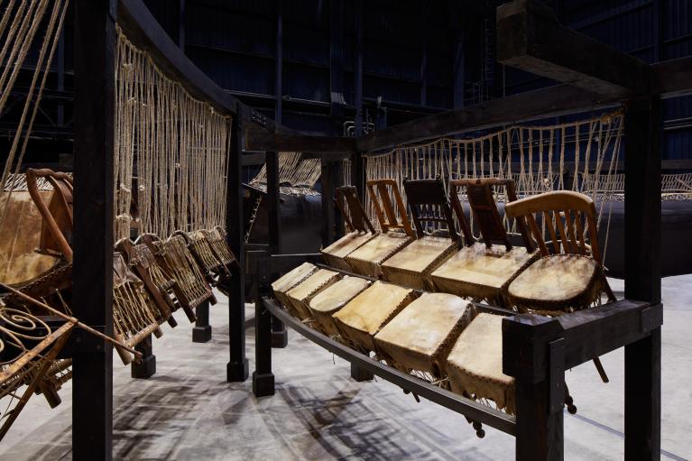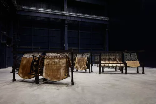 Chen Zhen The Voice of Migrators, 1995 Installation view, Pirelli HangarBicocca, Milan, 2020 PINAULT COLLECTION © Chen Zhen by ADAGP, Paris Courtesy Pirelli HangarBicocca, Milan Photo: Agostino Osio.