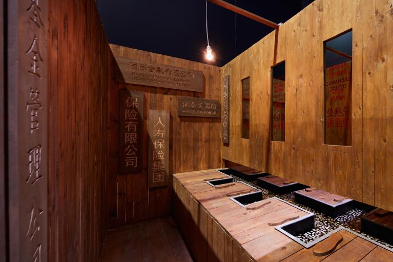 Chen Zhen Le Bureau de change, 1996-2004 Installation view, Pirelli HangarBicocca, Milan, 2020 © Chen Zhen by ADAGP, Paris Courtesy Pirelli HangarBicocca, Milan, and GALLERIA CONTINUA Photo: Agostino Osio.