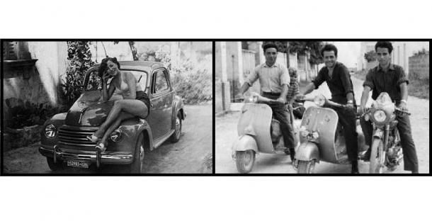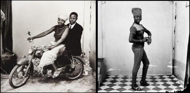 L’atmosfera che si respira nelle immagini di Sidibé evoca le fotografie italiane anni ‘50. Nel nostro immaginario di quegli anni ci sono uomini in sella a sciami di Vespe, ragazze sdraiate come pin up americane anni ‘40 su automobili Fiat o Alfa Romeo, occhiali da sole, grandi sorrisi. Anche da noi come nelle foto notturne di Bamako viene celebrato l’inizio del benessere e si percepisce l’ottimismo di una società in rinascita. L’oggetto-feticcio è sempre elemento centrale dello scatto.