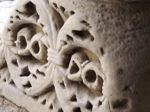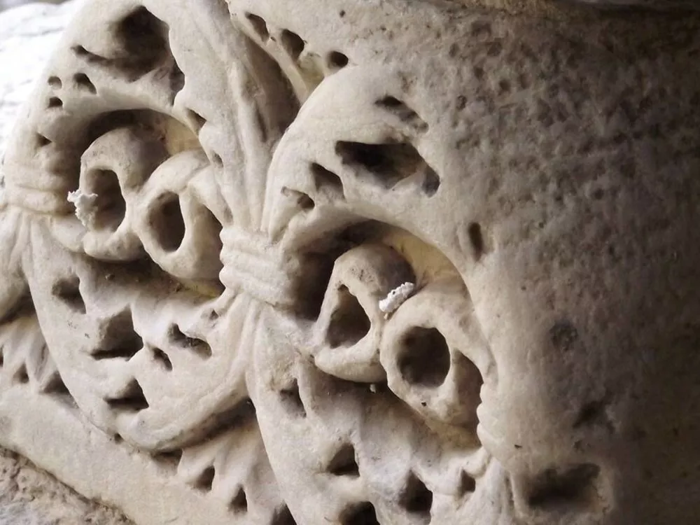 Schioccò la lingua, compiaciuto della propria memoria, e si girò in direzione dell’abate, nella speranza che si fosse finalmente liberato del mastro costruttore, ma i due stavano ancora discutendo. Per nulla seccato, tornò a guardarsi attorno e la sua attenzione fu subito attratta da un gruppo di lapicidi impegnati a scolpire dei blocchi di pietra a forma di tronco di piramide, non più lunghi di un braccio. Pensando fossero i nuovi pulvini, destinati a sostituire quelli andati perduti nel terremoto, si avvicinò per osservarli meglio e, sebbene il baccano dei mazzuoli fosse assordante, restò affascinato dai gesti delle mani che li guidavano; queste si muovevano, sapienti, sulla pietra, dando vita a scene di caccia popolate di cammelli, di leoni, di scimmie, di elefanti e di tutto un bestiario fantastico brulicante di mostri marini, di draghi, di centauri, di sirene e di grifi.