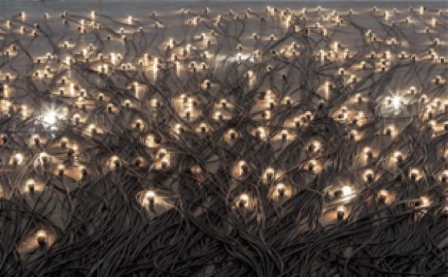 Quei volti siamo dunque noi, le assenze che essi evocano riguardano ognuno di noi. Forse anche quest’aspetto della sua attività fa parte dell’approccio grand public che Boltanski rivendica, di un’arte che parla a tutti, che cerca incessantemente di incontrare il nostro sguardo. Anche in questo caso, il visitatore non resta deluso, né spiazzato. I temi e i motivi che hanno fatto di Boltanski uno dei maggiori artisti contemporanei sono tutti ben presenti, così come molte delle grandi opere e dei materiali che caratterizzano il suo lavoro: le fotografie e gli abiti in particolare, usati dall’artista quasi fossero sinonimi, presentati entrambi come la traccia di un corpo morto, “un oggetto che rinvia a un soggetto e alla sua assenza”, dice Boltanski. La parete su cui si dispiega l’Album de photos de la famille D., 1939-1946 (1971) e le due installazioni presentate insieme, Le terril Grand Hornu (2015)/Les Registres du Grands Hornu (1997), si richiamano da un punto all’altro dell’esposizione. La prima – opera già presentata in occasione della Documenta 5 di Kassel – mostra una galleria di ritratti, figure vive, sorridenti, scene familiari e comuni che appaiono in fotografie ingrandite e sfuocate, quasi a voler rendere il punctum più fluido e volatile; le seconde evocano invece il motivo dell’assenza e della scomparsa di vite nell’anonimato, nella massa, sommerse dalle stoffe che ne hanno, un tempo, ricoperto i corpi lavoratori. Nomi, date, abiti scuri (evidente il riferimento à Personnes, 2010, presentata al Grand Palais) flebilmente illuminati, si accompagnano alle note scatole, agli archivi, alle lampadine, intermittenti (Cœur, 2005) o evanescenti (Crépuscule, 2015).