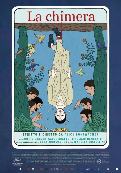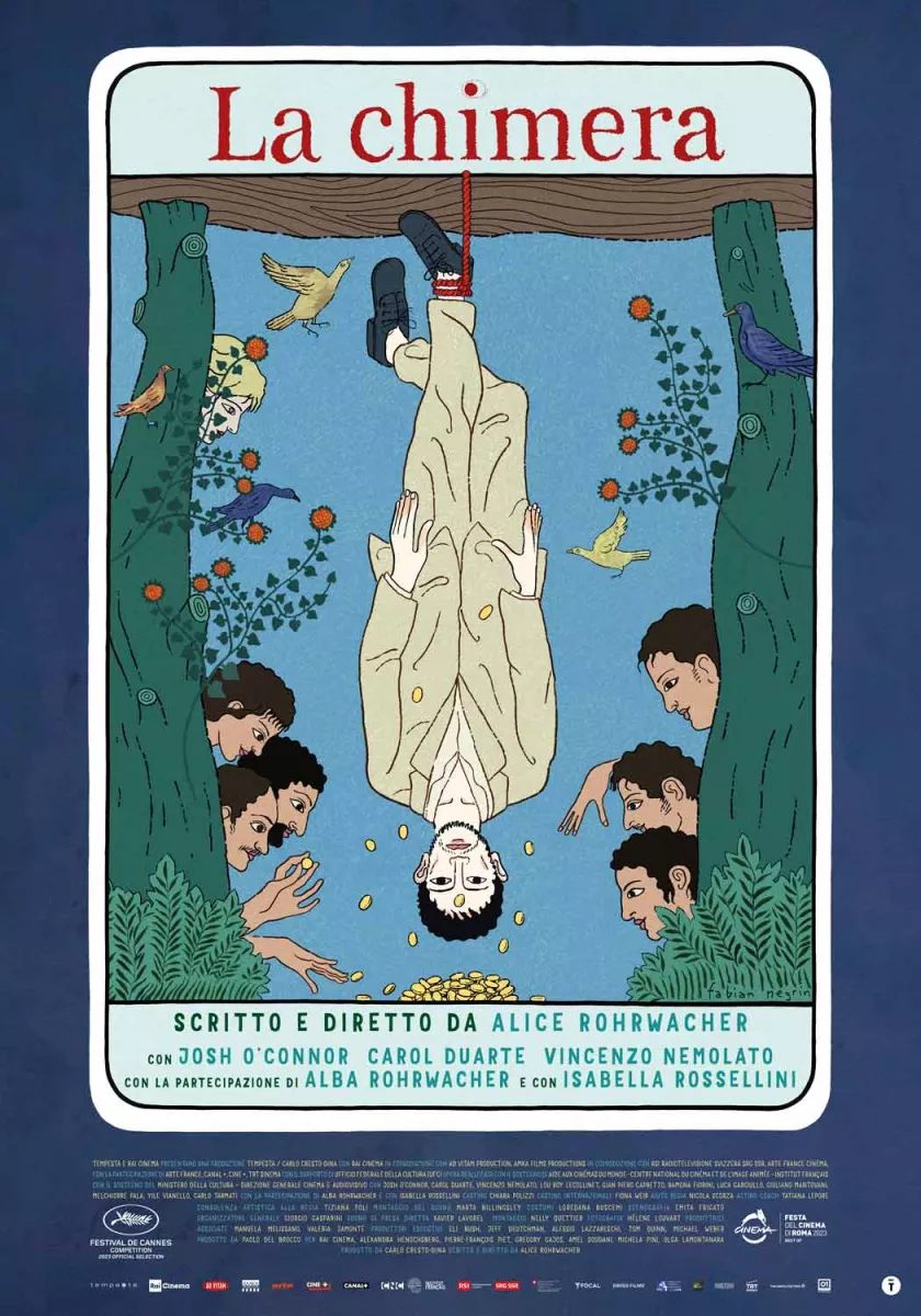 L'allegra e sgangherata banda di delinquenti al centro de La chimera viene presentata da Rohrwacher con una leggerezza inedita per il suo cinema. Nel fare questo non rinuncia agli elementi chiave della sua poetica, ma adotta un registro ironico che alleggerisce il tono della narrazione. Le domande che muovono La chimera si legano al noto interesse della regista verso il sofferto processo che ha portato l'Italia, nel dopoguerra, alla modernizzazione, e che qui si concentra sul materialismo culturale che ne è conseguito. Perché per oltre duemila anni tutti sapevano dell'esistenza delle necropoli etrusche ma nessuno le ha toccate, mentre tra gli anni Settanta e Ottanta vengono depredate senza che nessuno si opponga? Quand'è che le persone hanno smesso di vedere negli oggetti la loro storia e hanno cominciato a vederci soltanto delle cose qualsiasi, della merce? La riflessione viene costruita attorno al personaggio di Arthur (Josh O’Connor), un archeologo dotato di poteri rabdomantici che gli permettono di percepire lo spazio vuoto sotto il terreno e di individuare così la presenza delle necropoli etrusche. Arthur è simile a un eroe romantico, ammirato per la sua straordinaria capacità sensoriale ma, allo stesso tempo, legato al Lazzaro di Lazzaro felice. Da subito viene considerato un alieno nel proprio contesto; è lo straniero – tutti, in paese, lo chiamano l'Inglese – e il suo destino, circolarmente, è lo stesso del protagonista del film precedente.