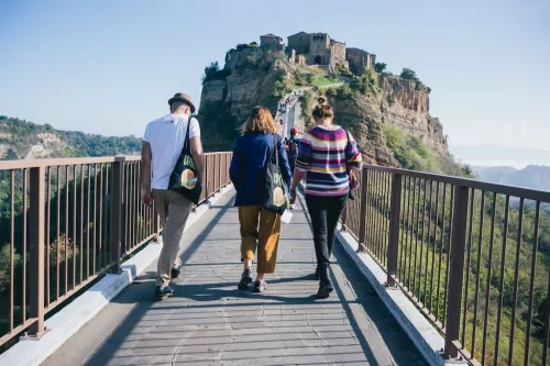 La coreografa Francesca Pennini e il cantautore Vasco Brondi imbastiscono un complesso rito collettivo dal titolo Sotto alle palpebre. Un’altra Civita per altri occhi. Preparata da un’esplorazione bendata di Pennini, guidata da Brondi, di cui leggiamo il racconto, la performance è costruita come un viaggio a occhi chiusi anche per i partecipanti. Un percorso insolito e tortuoso, con compiti da svolgere che finisce con una camminata all’indietro sul ponte per accogliere gradualmente Civita nel campo visivo, un panorama che allontanandosi diventa qualcosa di microscopico di cui prendersi cura.