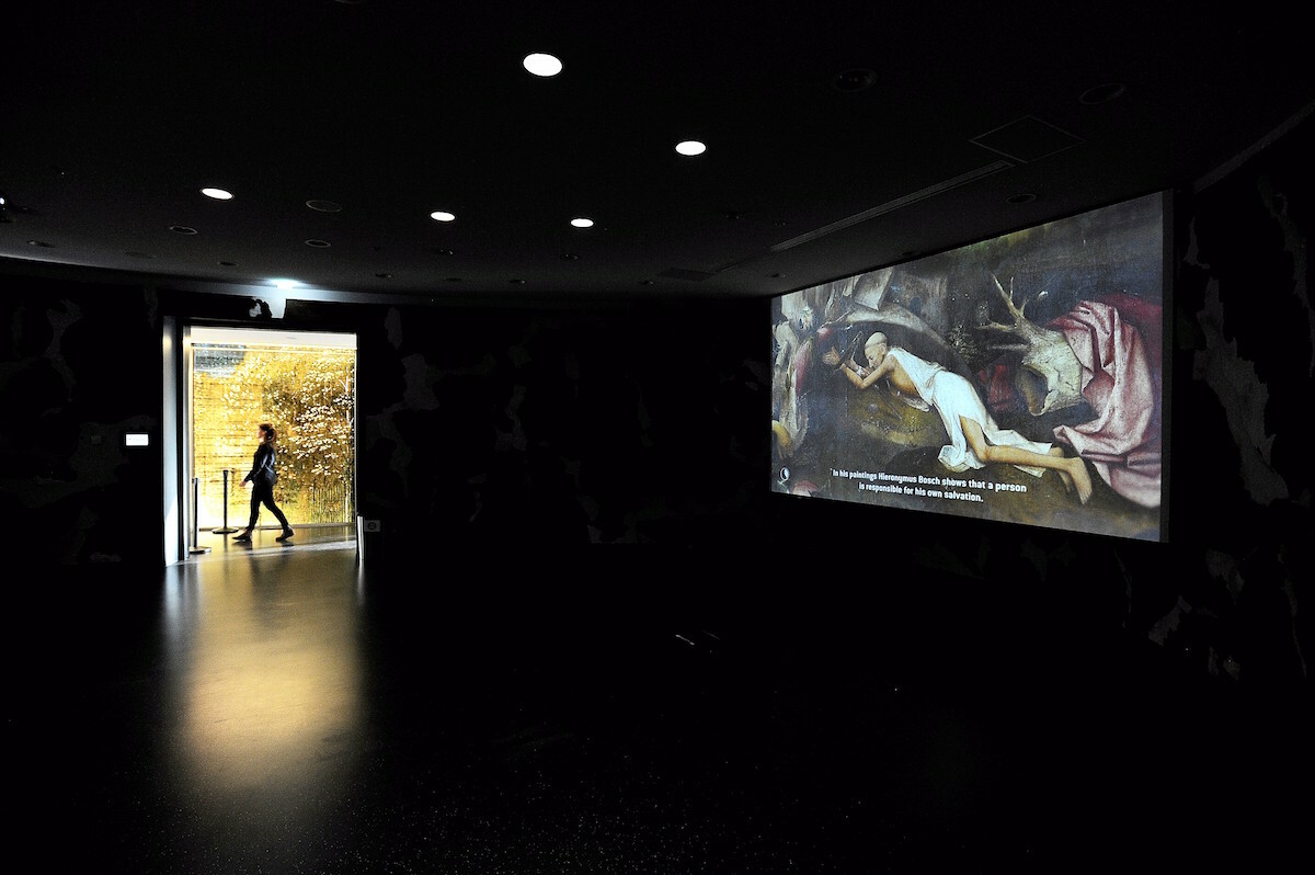Con le sale buie, visitare la mostra di Bosch è un po’ come andare al cinema. La mostra comincia con una proiezione enfatica come dei titoli di testa e si chiude con un altro video; lungo il percorso proliferano schermi con i dettagli dei dipinti che rischiano di sfuggire «ad occhio nudo». L’esperienza della pittura vive di un’intensità tecnologicamente indotta.