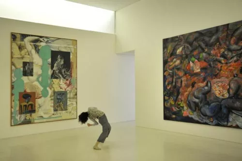 Come insegna la semiotica contemporanea che lavora sui corpi e le loro “impronte” (J. Fontanille, Figure del corpo, Meltemi, 2004), o quella che indaga le esperienze mediali più o meno dirette degli spettatori (R. Eugeni, Semiotica dei media, Carocci, 2010), un corpo danzante è sempre un “traduttore”, nel suo porsi come campo sensibile e dinamico di forze, come insieme di sintassi somatiche e di microgestualità, di ritmi più o meno sostenuti, puntuali o ripetitivi, e come portatore di narrazioni visive più o meno astratte. La combinazione di spazio, luce e volumi solidi e statici dell’architettura, nei suoi ritmi visivi tridimensionali, si può infatti “tradurre” nelle gestualità in movimento dei danzatori, così come passano quelle micronarrazioni dovute ai “contrasti plastici” tra corpi che danzano e pittura, o tra corpi e musica e installazioni. Contrasti plastici? Intendiamo ritmi e forze, ad esempio di apertura o di chiusura dello spazio, di pesantezza o di leggerezza dei gesti e dei corpi, di staticità o velocità del movimento, con contrasti tra forme e linee che possono essere discontinue e spezzate, oppure continue, curvilinee e circolari. Sono contrasti che creano legami sottili tra i corpi dei danzatori in movimento, da soli o in gruppo, e gli spazi aperti o chiusi, i ritmi binari o complessi, i gesti dilatati oppure contratti… Come a dire che la danza apre alla dimensione non figurativa (non iconica), e non immediatamente narrativa, bensì “figurale”. E che proprio nella figuralità si trova una possibile via intermediale tra oggetti così diversi come un corpo in movimento, uno spazio museale, un quadro d’arte concettuale o figurativa, una musica elettronica o con richiami folklorici, una installazione con un corpo affusolato di poliuretano policromo, appeso a un cavo d’acciaio che pende dal soffitto (il già citato Matthew Barney, di Barry X Ball), o un quadro di Julian Schnabel, ecc. La chiave è quella ritmica, che attraversa i corpi e le materie mentre apre microracconti frammentari, con un risultato effimero e, assieme, potente: sta negli occhi e nella pelle che freme degli spettatori, passa sottopelle nei loro adeguamenti somatico-percettivi alla situazione in cui sono immersi, fino a farli vibrare insieme ai danzatori-traduttori. E ci porta, infine, a sedersi pacificati tra loro, nella sospensione tra spaesamento e intimità.