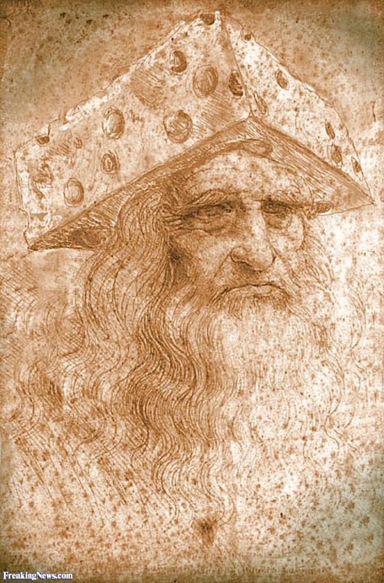Le immagini universalmente riconoscibili di Leonardo sono essenzialmente due: la prima nasce da un dipinto, scoperto all’inizio del Settecento, ancora esposto alle Gallerie degli Uffizi e creduto un autoritratto autentico fino all’inizio del secolo scorso. Si tratta invece di un falso, è però un Leonardo con cappello da pittore.